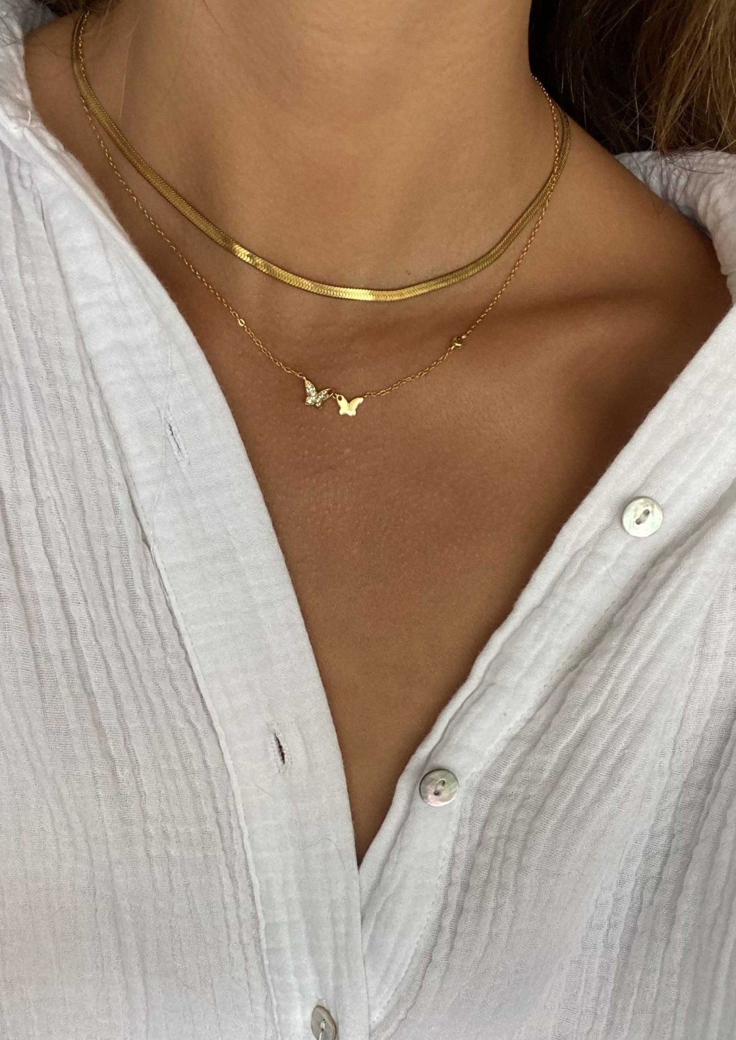 Gold Butterfly Necklace - Multi-Charm Zirconia - 18K Gold Tone - Layered