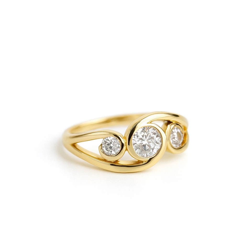 Embrace the beauty of fluid design with the Gold Spiral Zirconia Ring. This architectural piece features a unique spiral structure and brilliant stone accents, embodying the "Quiet Luxury" aesthetic.
