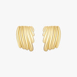 Make a statement with these gold-toned hoop earrings featuring a bold ribbed swirl texture. The curved, layered look adds dimension and elegance, perfect for both everyday wear and special occasions. Comfortable clip-on style with a high-shine finish.