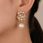 Embody the spirit of natural beauty and timeless elegance with the Gold Floral Pearl Drop Earrings. This piece is a tribute to classic craftsmanship, featuring delicate floral motifs and elegant pearls that evoke the feeling of a cherished family heirloom.