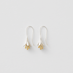Long Silver Floral Drop Earrings with Gold Bead Accents