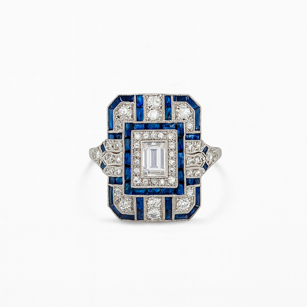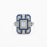 Let this ring be the centerpiece of your hand. Pair it with a monochrome outfit to let the blue accents truly shine, or combine it with a navy blazer for a coordinated, high-end look.