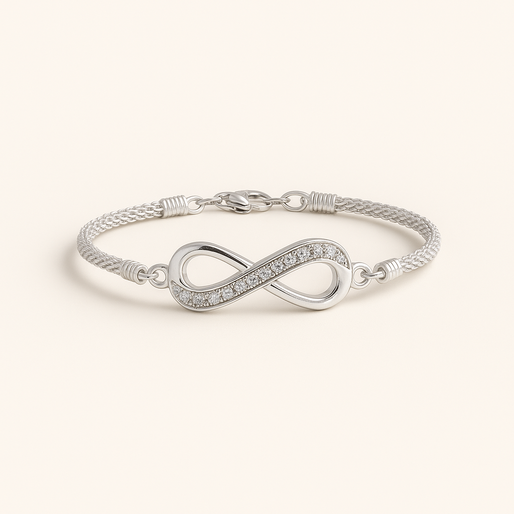 Celebrate eternal style with the Silver Infinity Zirconia Bracelet. This delicate piece is a masterclass in "Quiet Luxury," offering a continuous sparkle that symbolizes timeless elegance and refined taste.