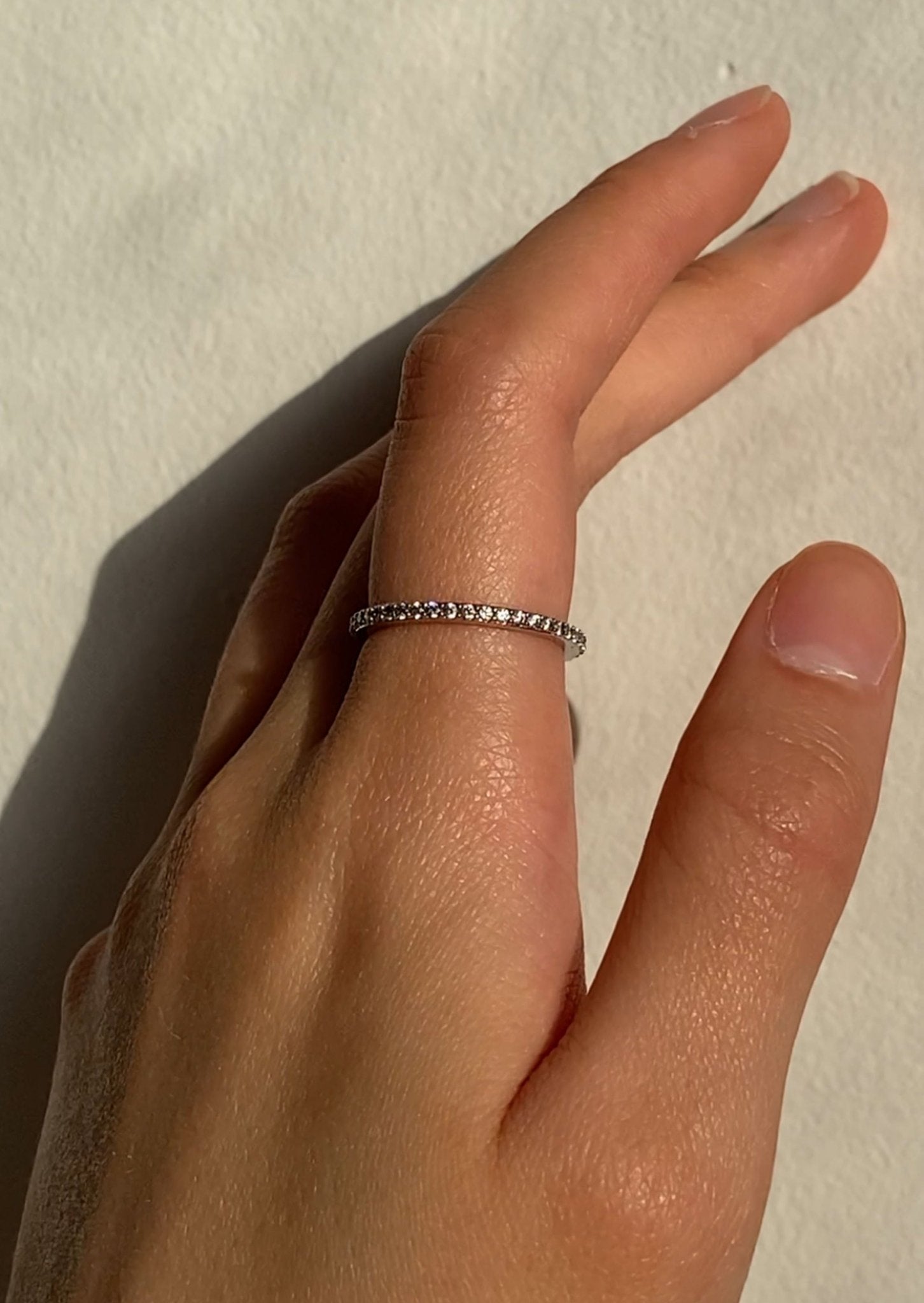 Slim Silver Tone Eternity Ring with Clear Stones