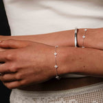 This bracelet features a slim sterling silver chain detailed with evenly spaced floral-shaped gems, creating a refined and versatile look. Its lightweight style makes it suitable for both everyday wear and special occasions. The piece includes an adjustable clasp for a secure and personalised fit, offering both practicality and style.