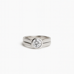 This ring features a round white crystal in a secure bezel-style setting, paired with a smooth silver-tone band. Its clean lines and balanced shape make it suitable for both everyday wear and special occasions. The design reflects a timeless style that can complement various looks.