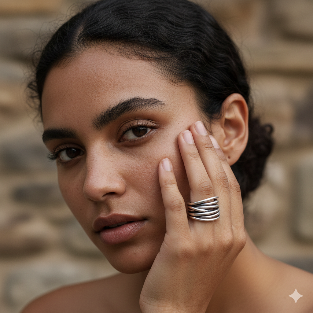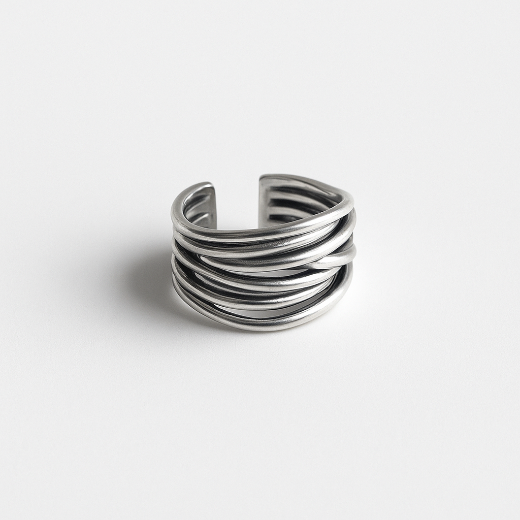 Adjustable Silver Tone Multi Band Ring with Layered Detailing