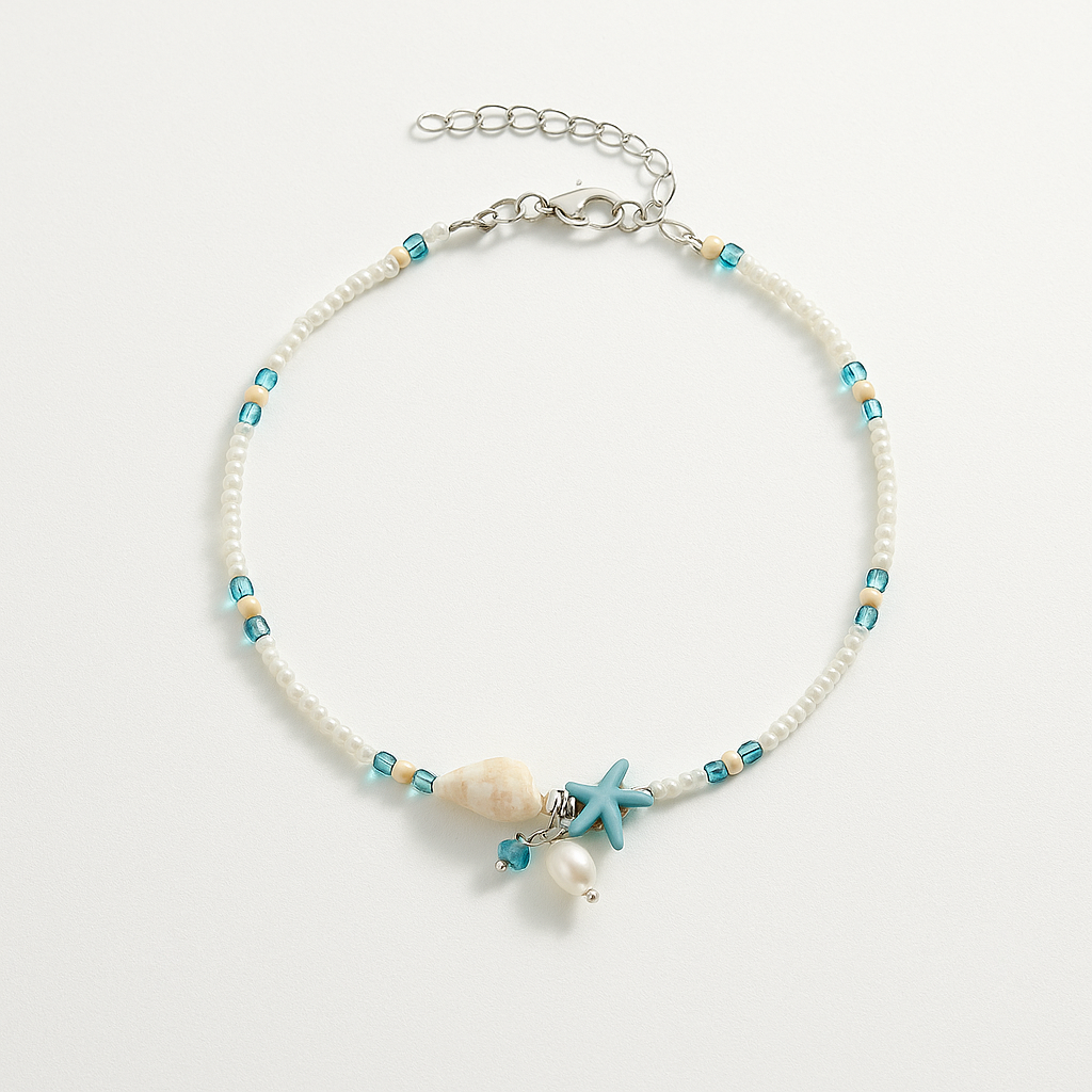 Beaded Beach Anklet with Blue Starfish and Shell Details