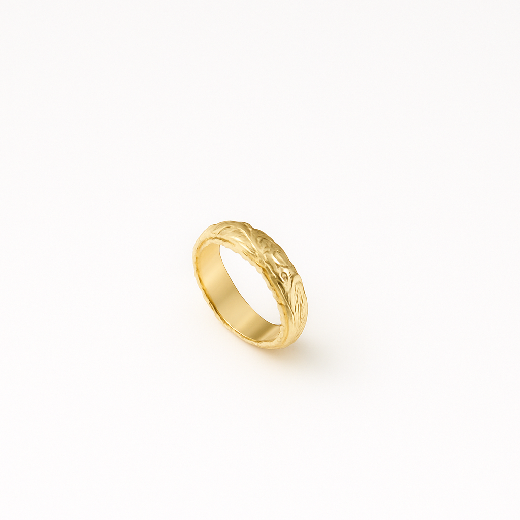 Vintage Floral Engraved Gold Ring with Detailed Pattern