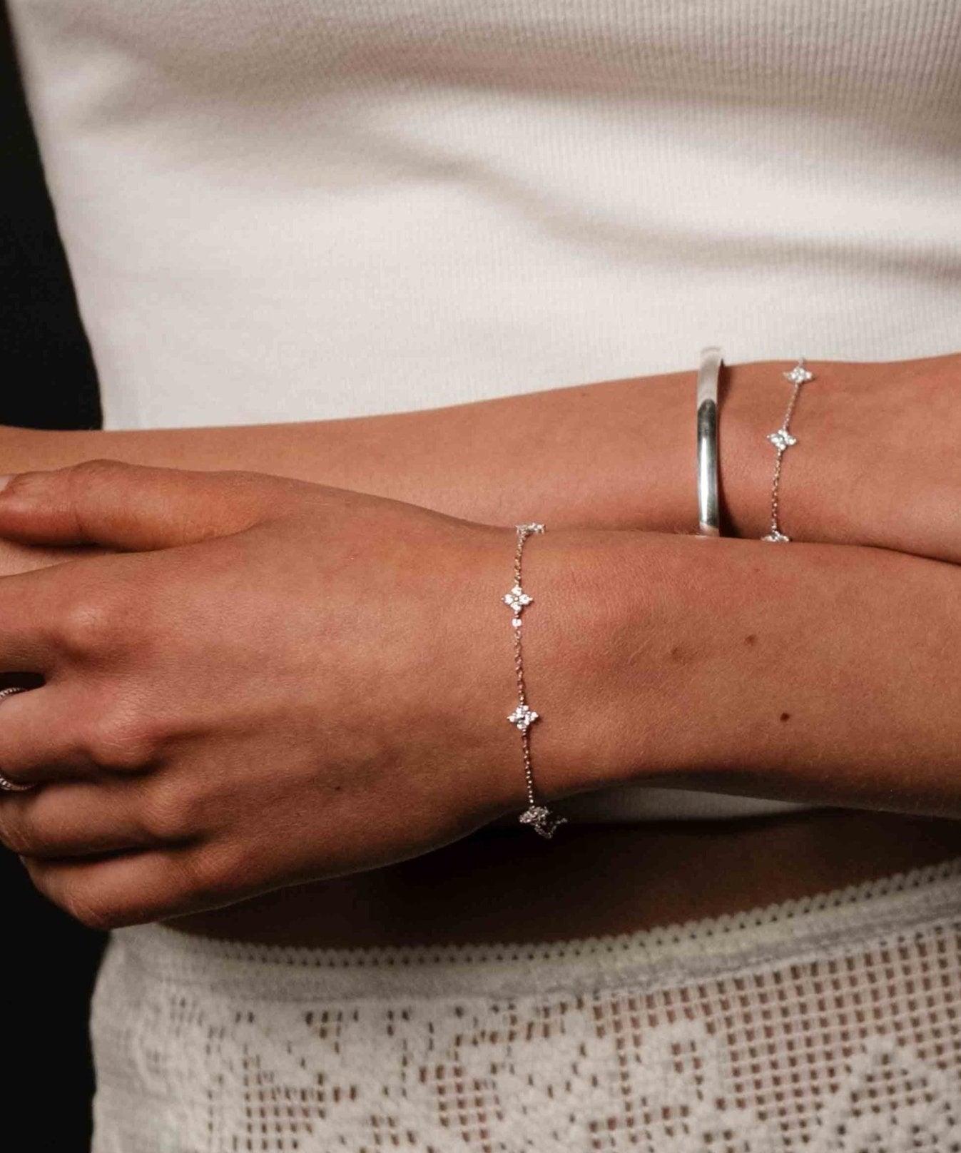 Sterling Silver Tone Bracelet with Floral Gem Accents