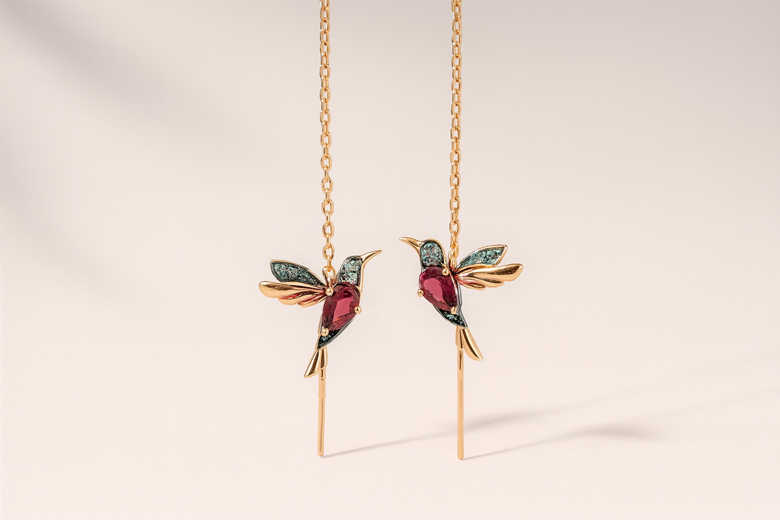 Hummingbird Drop Earrings with Multicolor Crystal Detail