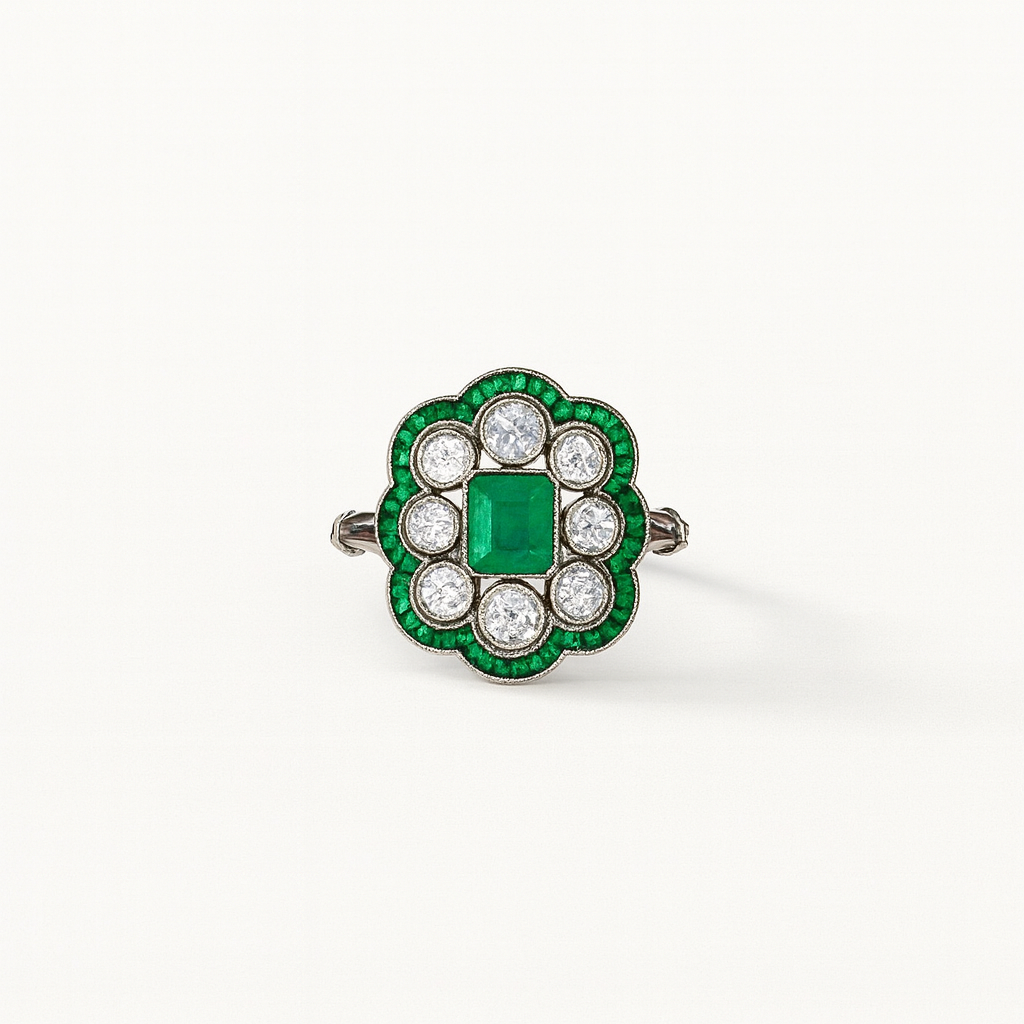 Green Floral Inspired Ring with Clear Simulated Stone Accents