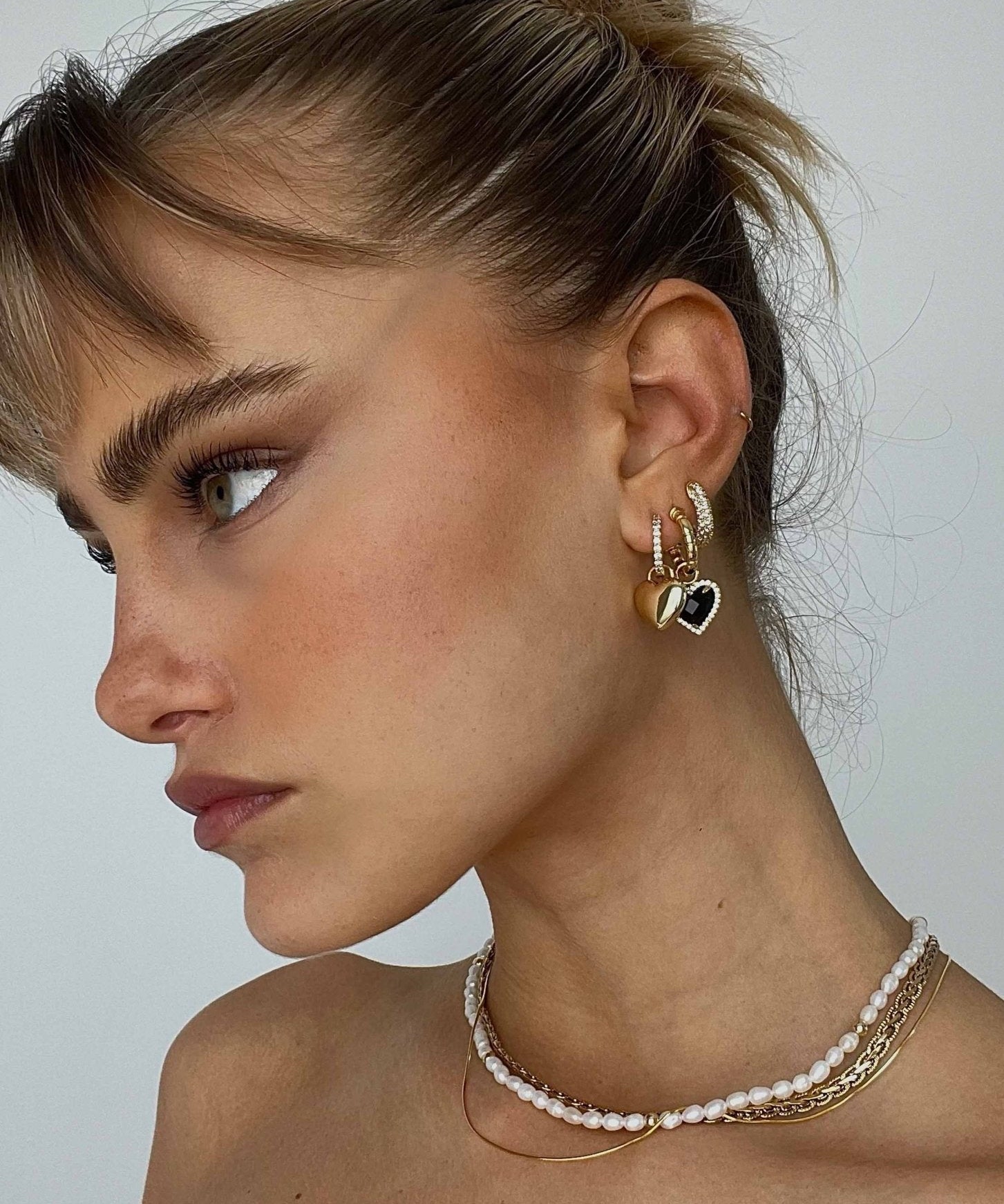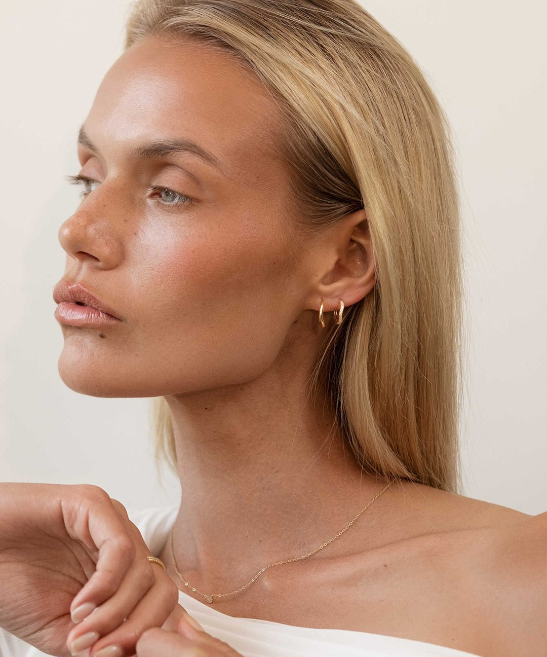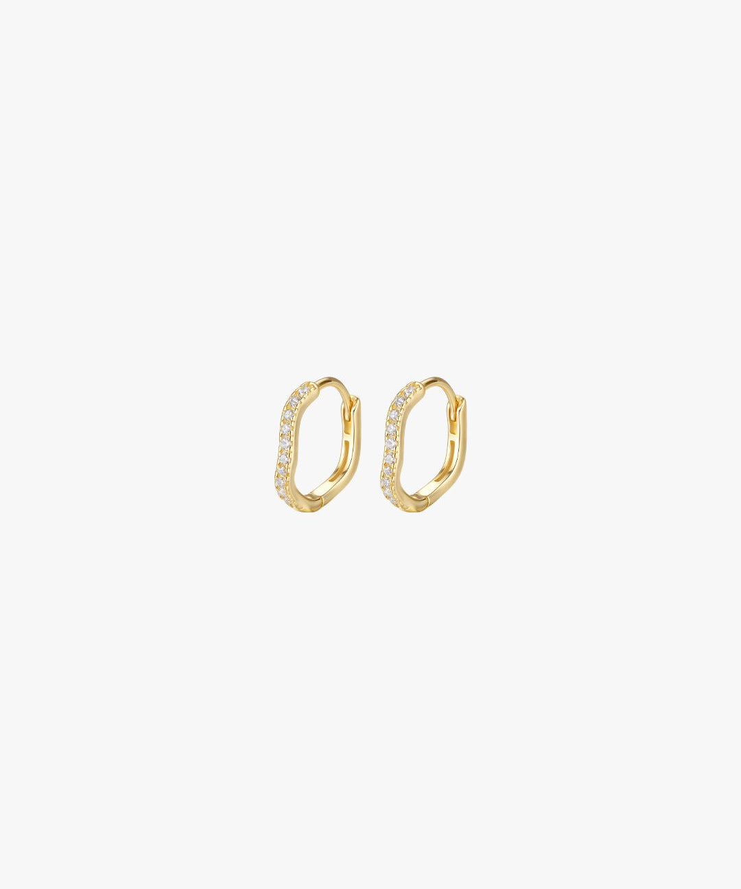 Gold-Plated Pave Huggie Earrings with Organic Shape
