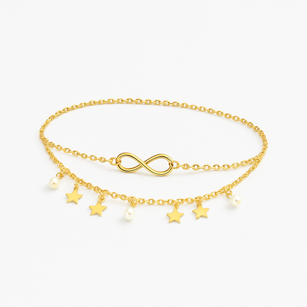 Layered Gold Infinity Anklet with Pearl and Star Charms
