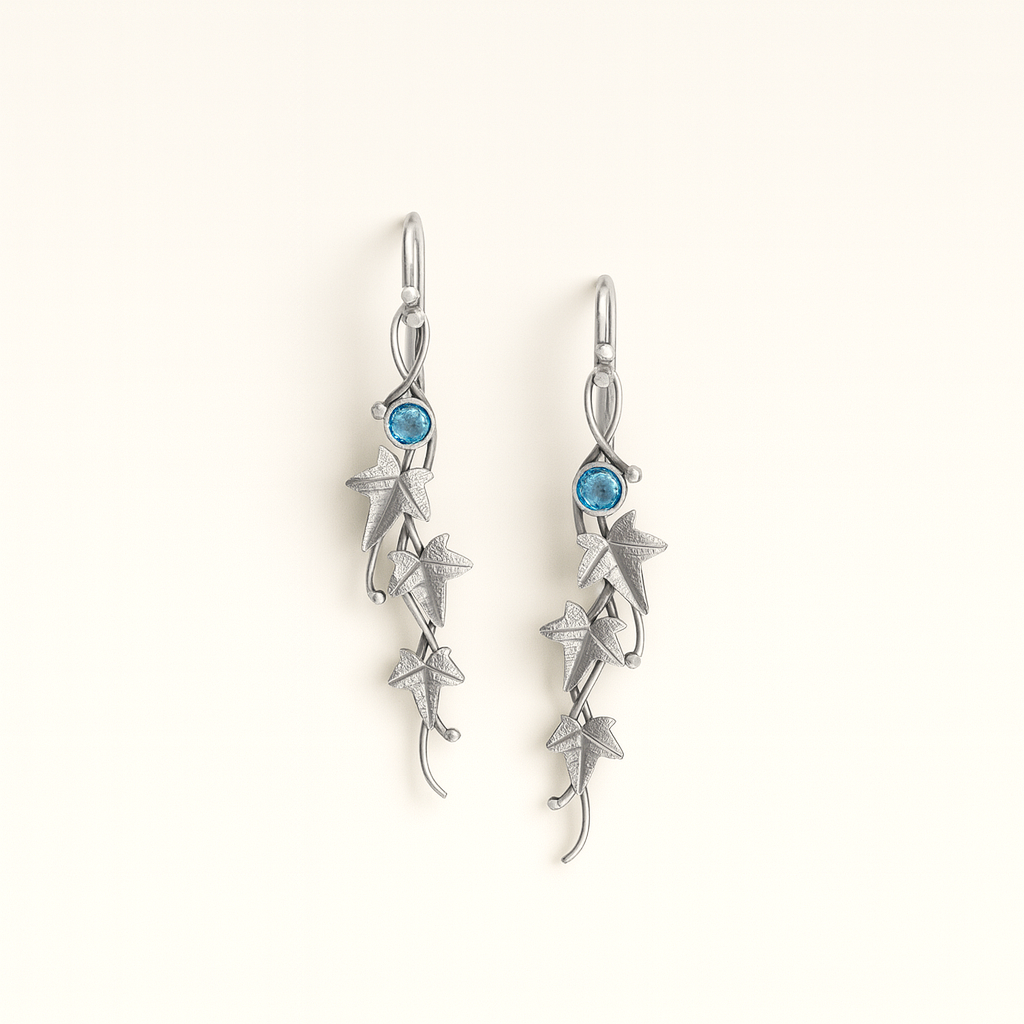 Nature Inspired Leaf and Vine Drop Earrings in Silver Tone