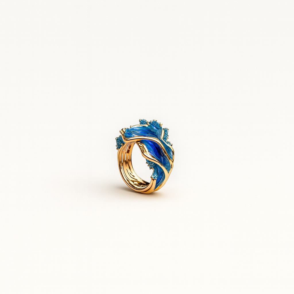 Ocean Wave Gold Ring with Blue Accent Detailing