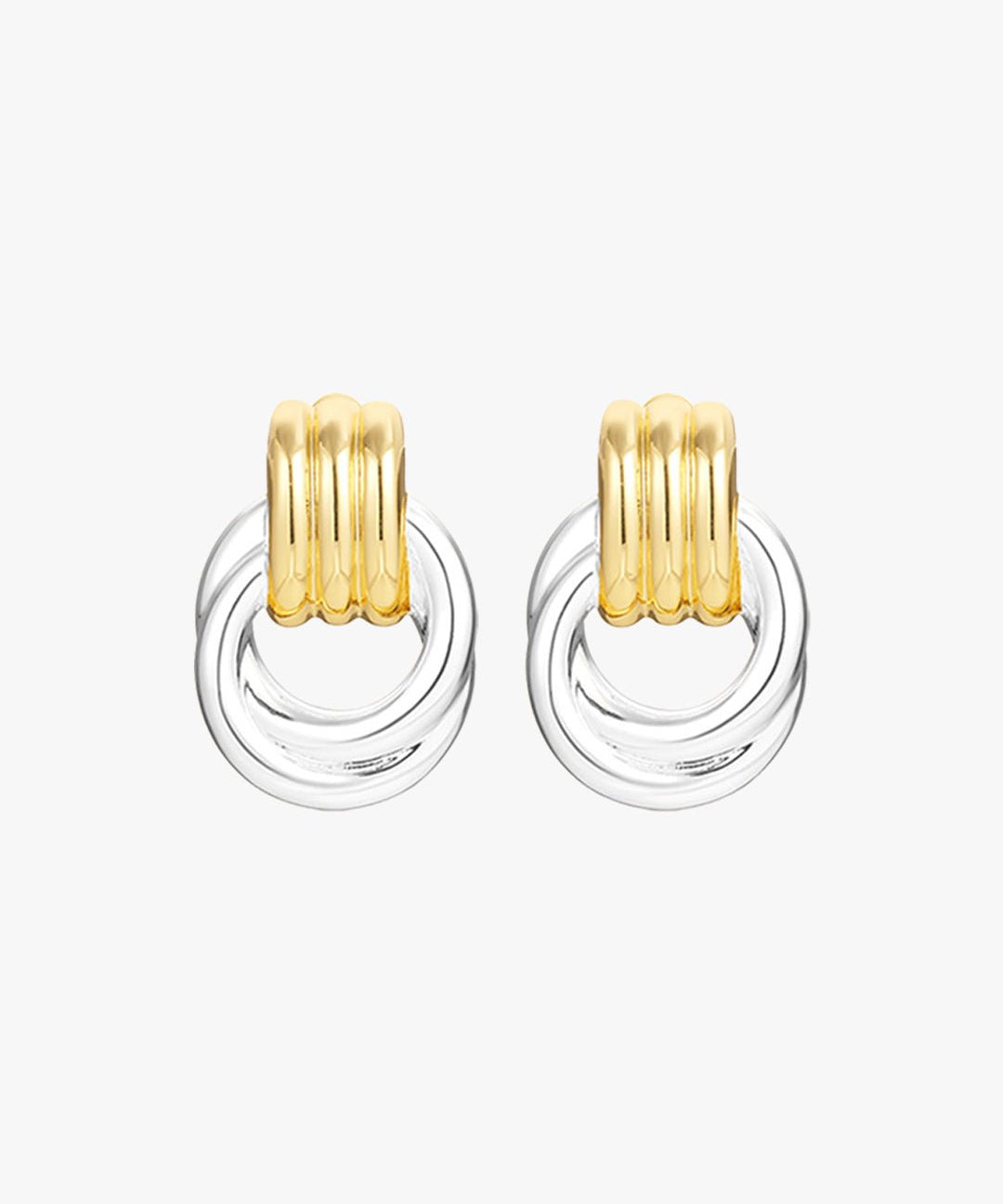 Long Silver Floral Drop Earrings with Gold Bead Accents