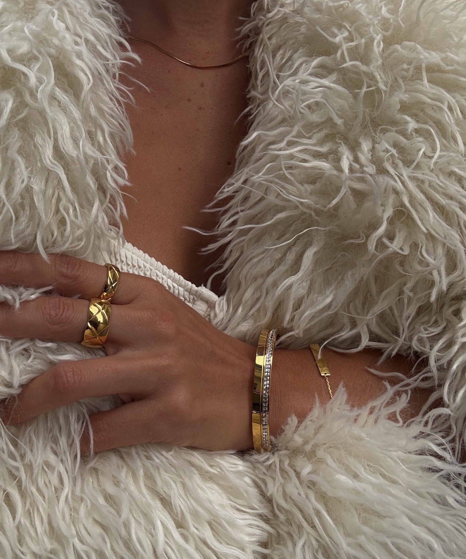 Gold Tone Wide Band Ring with Sculpted Geometric Texture