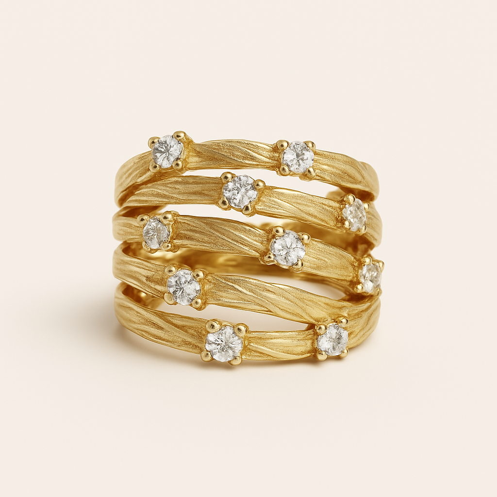 Gold Texture Band Ring with Small Clear Stone Detailing