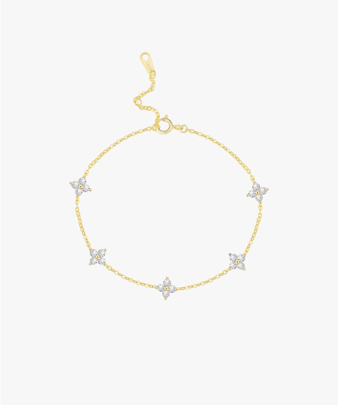 Gold Tone Bracelet with Delicate Flower Gemstones