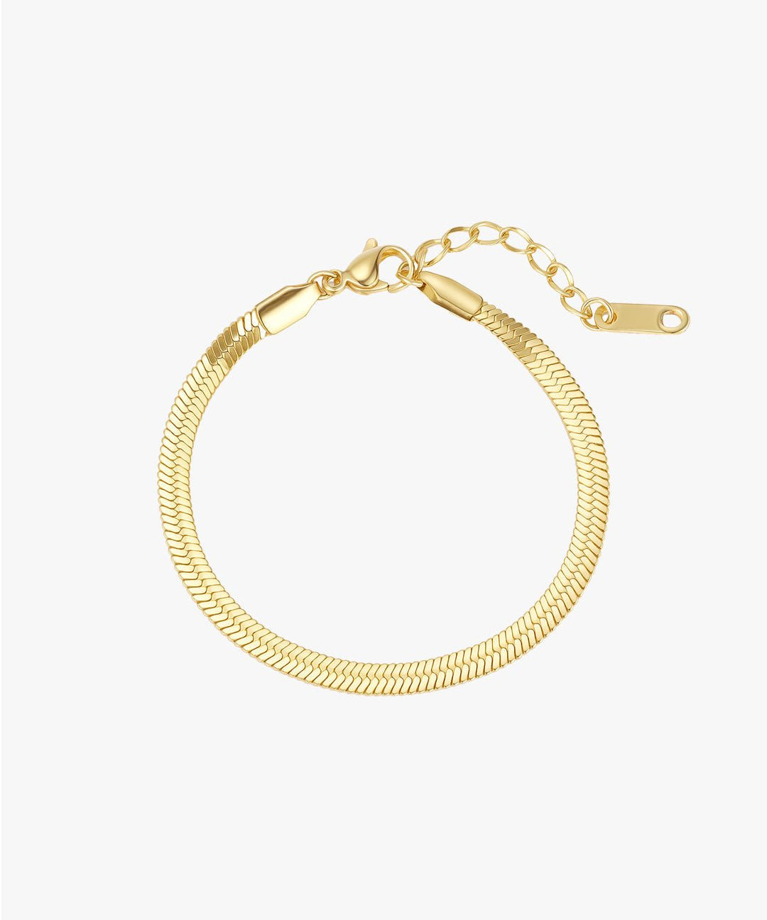 Gold Tone Flat Herringbone Bracelet 4mm Polished Style