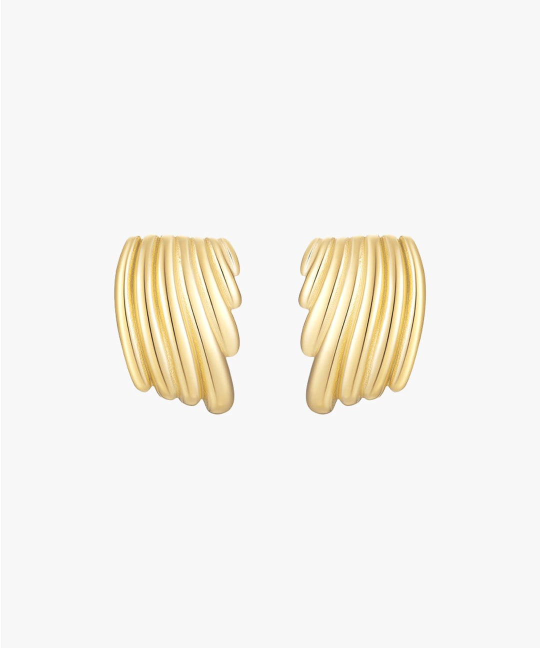 Gold Textured Hoop Earrings with Ribbed Swirl Design