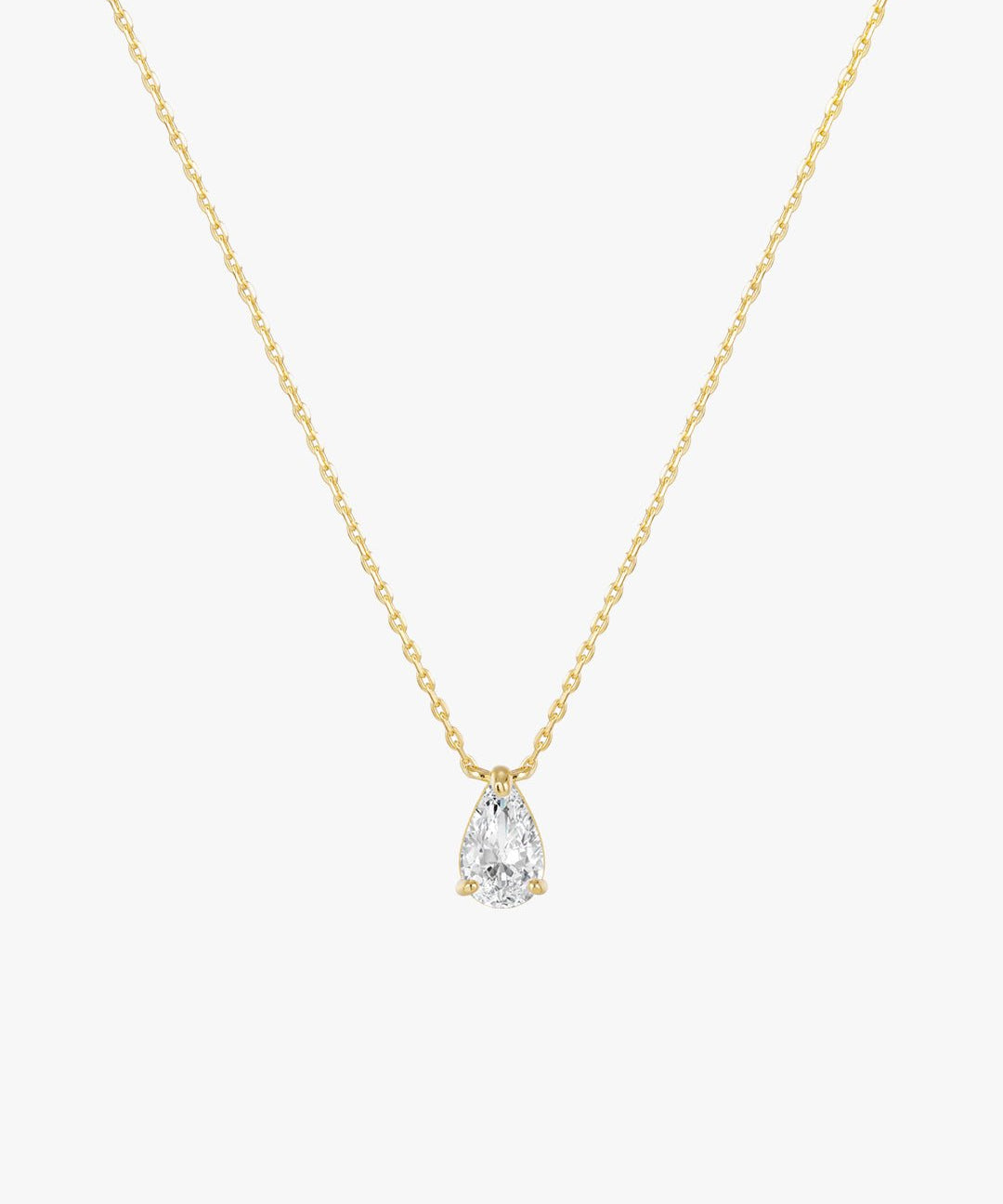 Gold Teardrop Pendant Necklace with Clear Crystal Accent