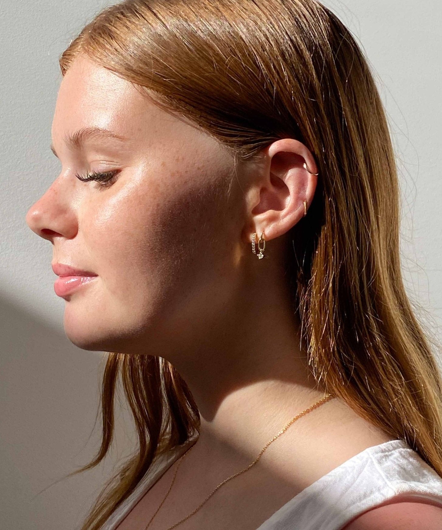 Gold Tone Hoop Earrings with Round Clear Zirconia Highlights