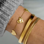 The Gold Lovers Bracelet features an elegant heart-inspired pendant suspended from a polished link chain. With its rich 18K gold luster and classic motif, this piece is designed to be a future heirloom—a subtle yet powerful expression of connection and grace.