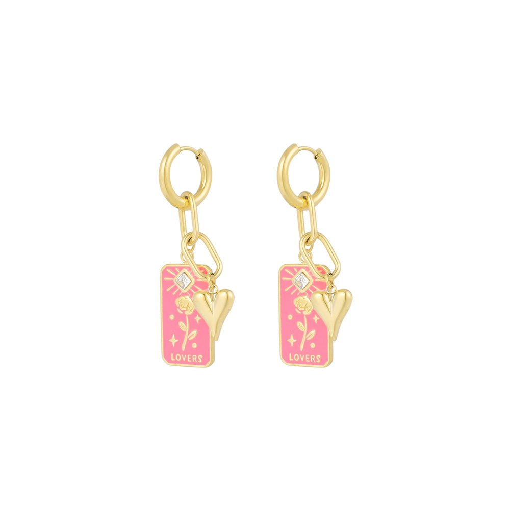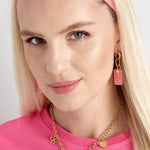 Gold Rose Lovers Pink and Gold Earrings - Botanical Heritage - 18K Gold Tone