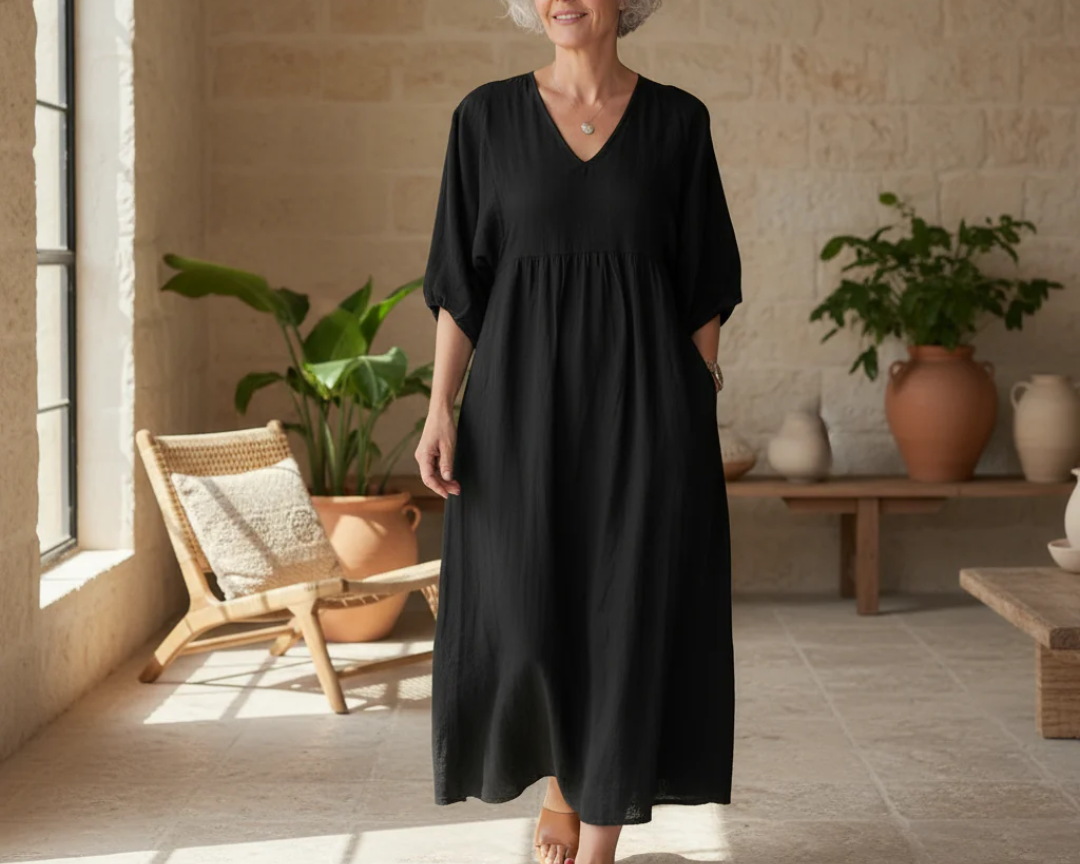 This women’s casual midi dress presents a clean silhouette designed for easy, everyday styling. Its balanced length and relaxed structure support freedom of movement while maintaining a refined appearance. Suitable for casual outings, home wear, or travel, it adapts well to a variety of daily settings.