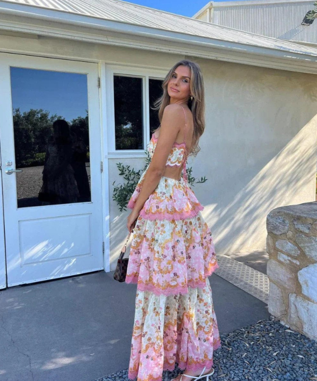 Women's Tiered Spaghetti Straps Wedding Guest Dress | Maxi