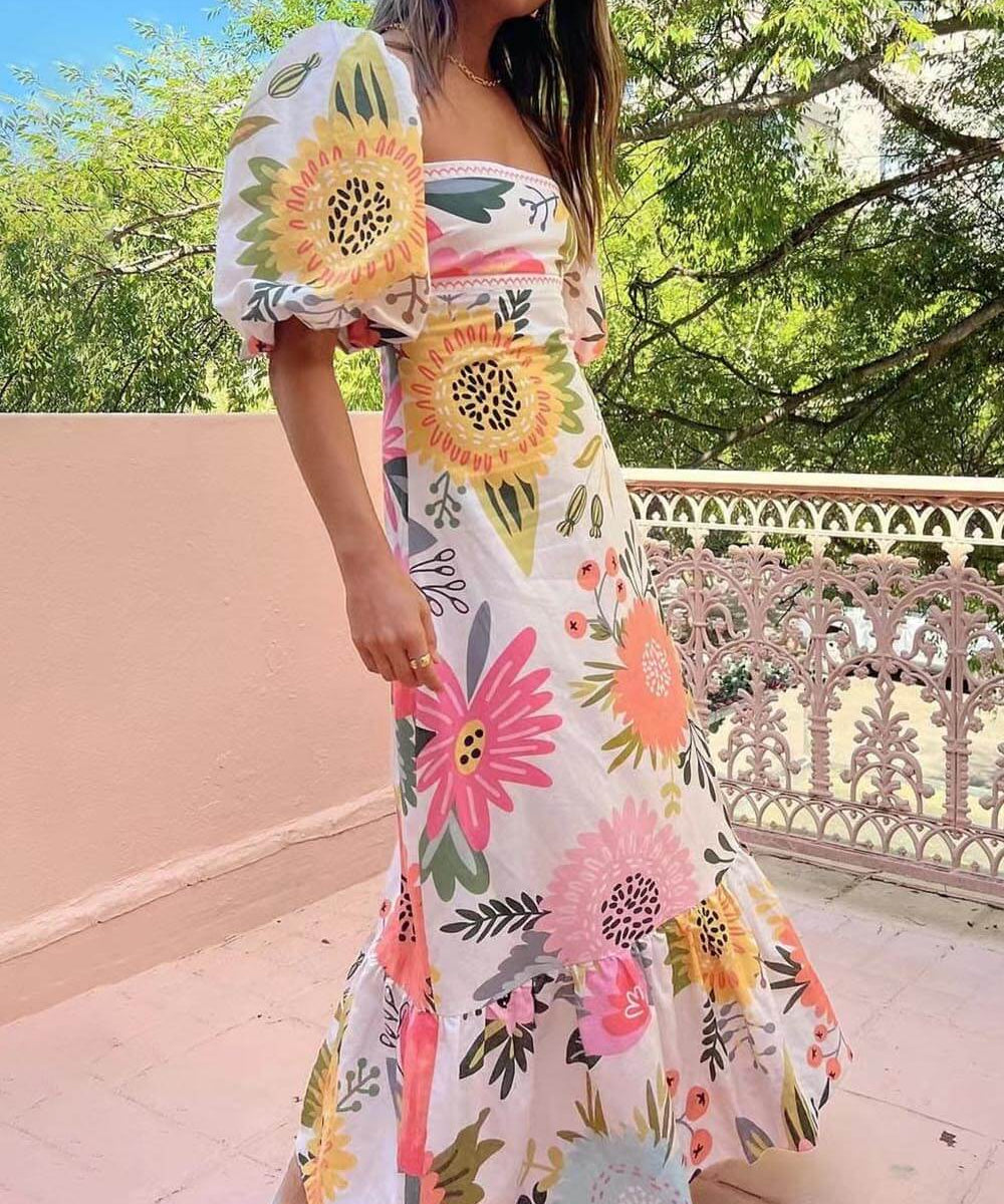 Women's Wedding Guest Dress with Puff Sleeves | Maxi