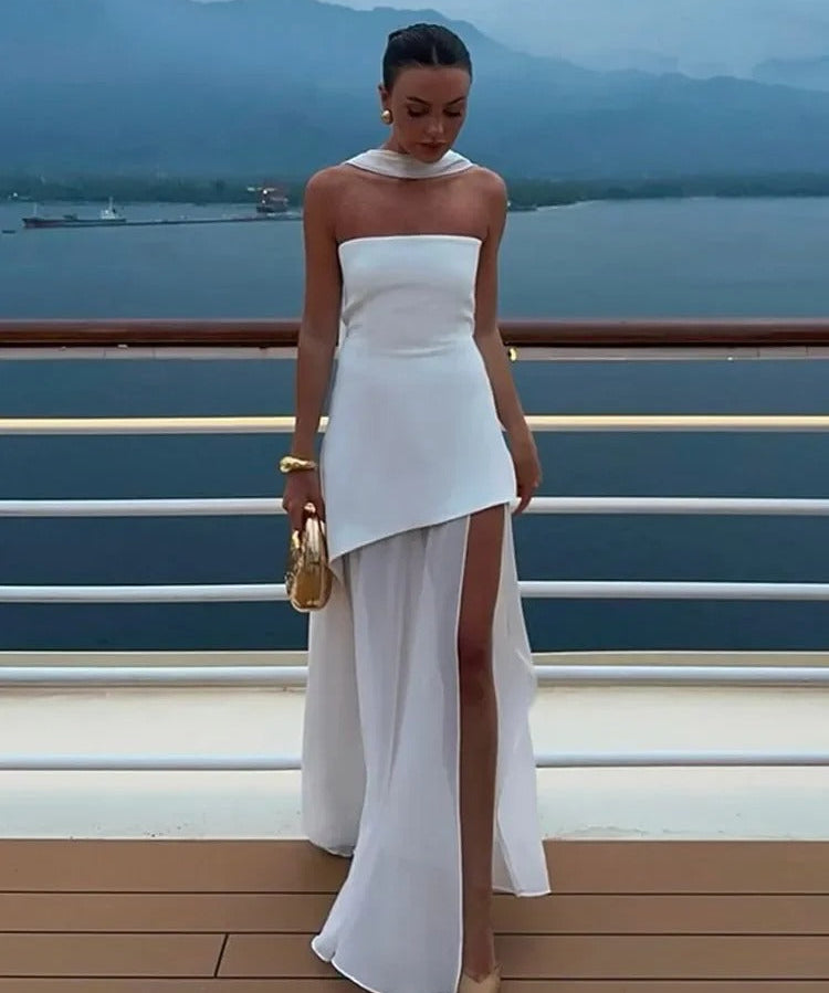 Women's Strapless Wedding Guest Dress with Slit | Maxi