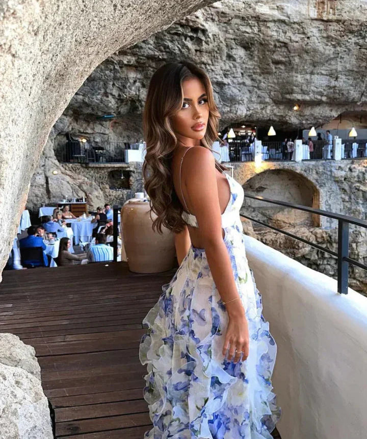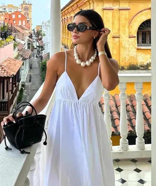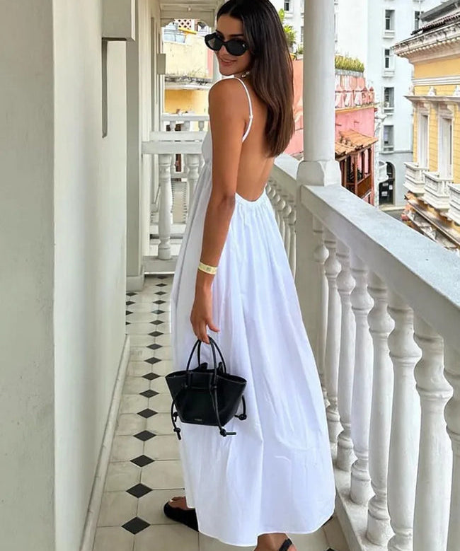 Women's Sleeveless Low Back Summer Dress with V-neck | Maxi