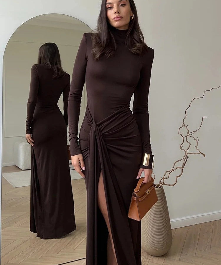 Women's Ruched Wedding Guest Dress with Long Sleeves | Maxi