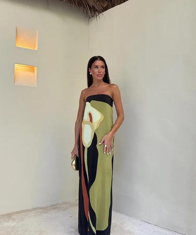 Women's Sleeveless Strapless Wedding Guest Dress | Maxi