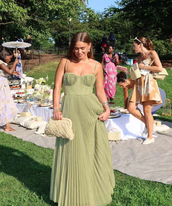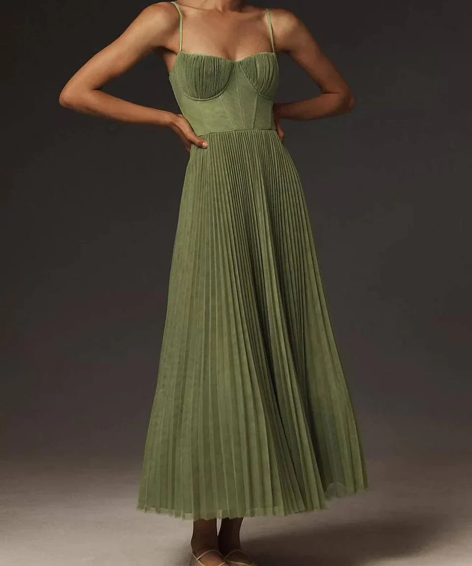 Women's Sleeveless Pleated Bridesmaid Dress with Sweetheart Neckline | Maxi