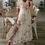 Women's Half Sleeves V Neck Boho Summer Dress | Midi