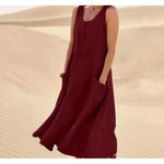 Women's Round Neck Sleeveless Summer Midi Dress | With Pockets