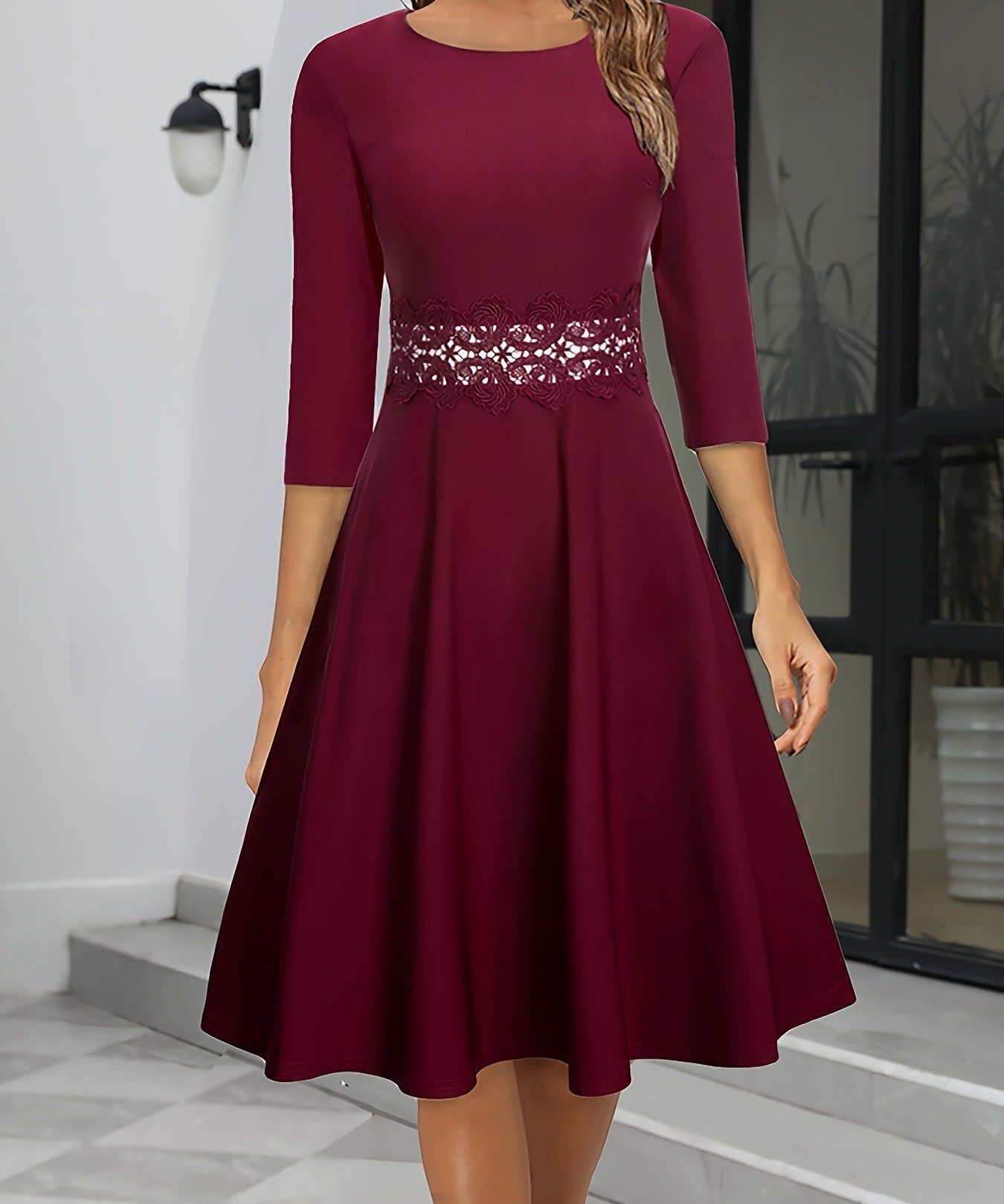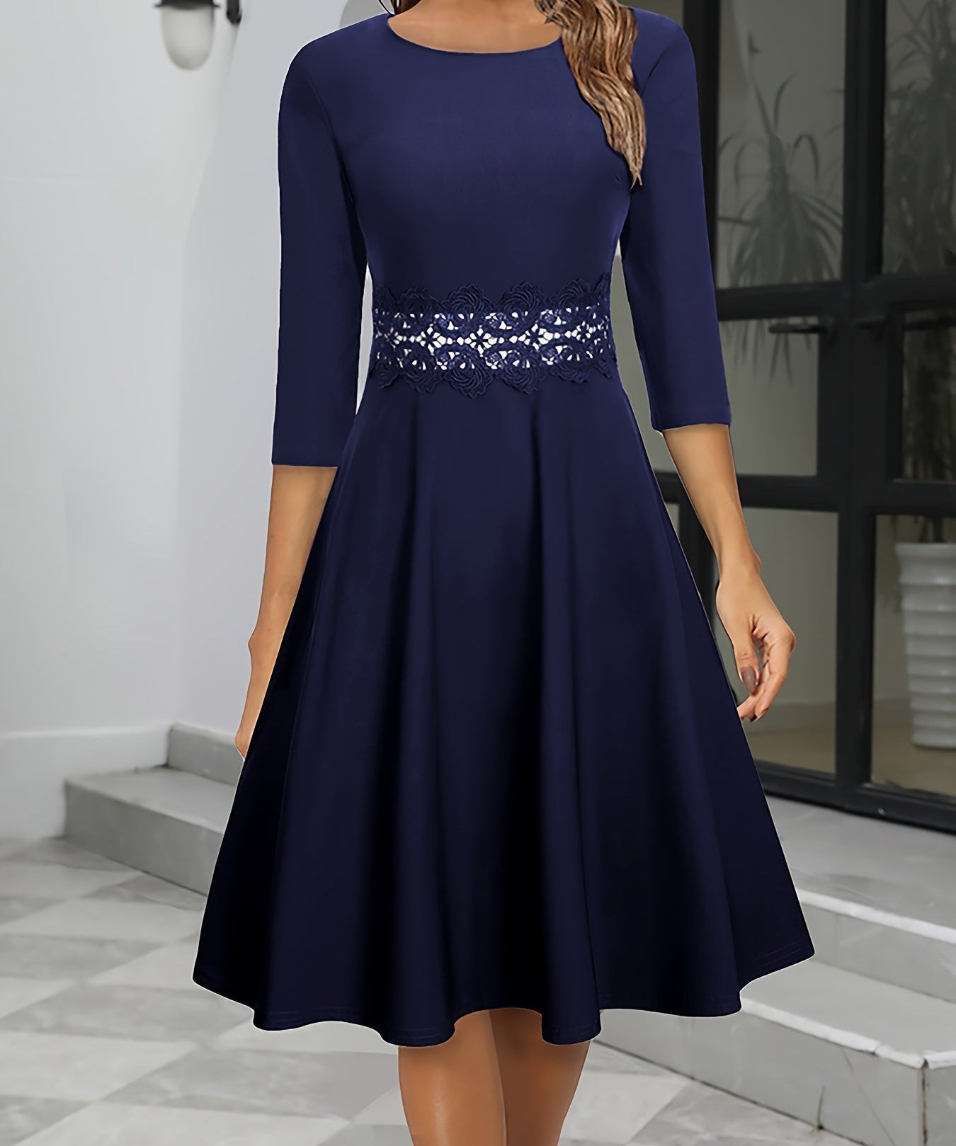 Women's A-Line 3/4 Sleeve Round Neck Summer Dress | Midi