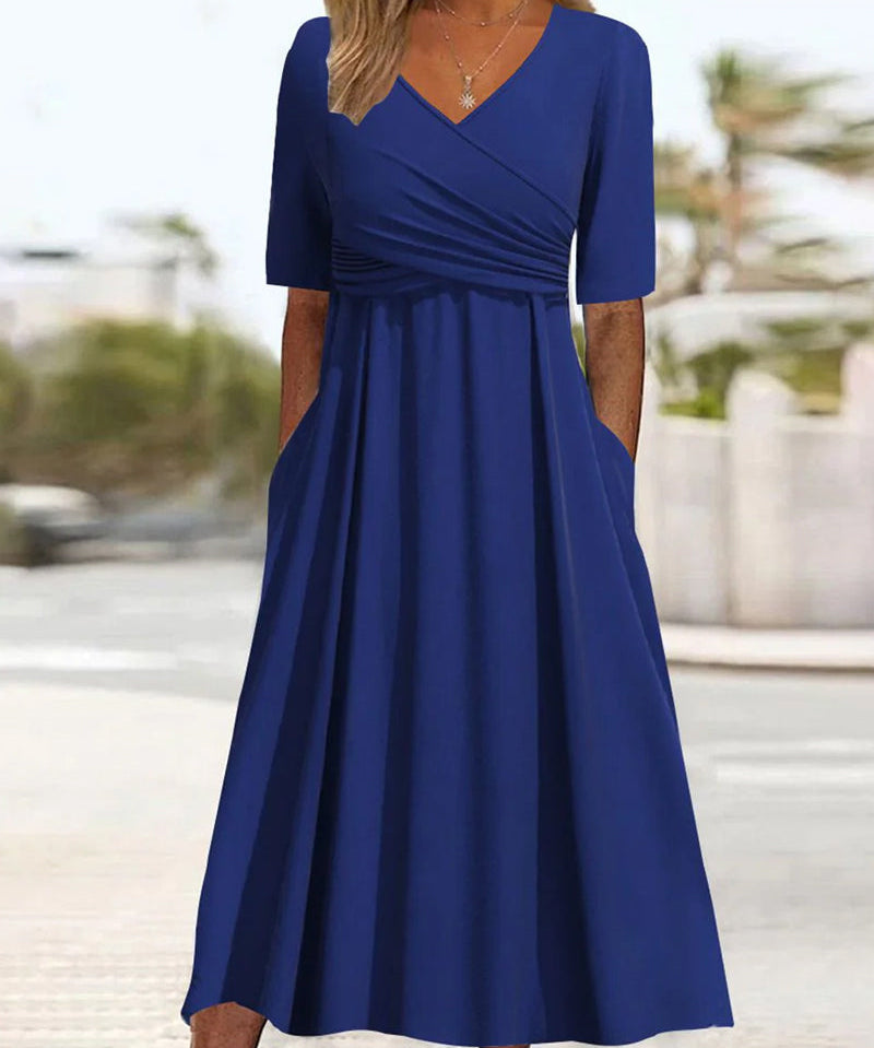 Women's Half Sleeves V Neck Boho Summer Dress | Midi