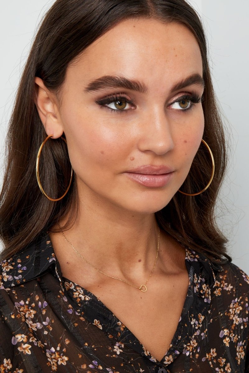 Gold Connected Chain Necklace - Modern Link Design - 18K Gold Tone