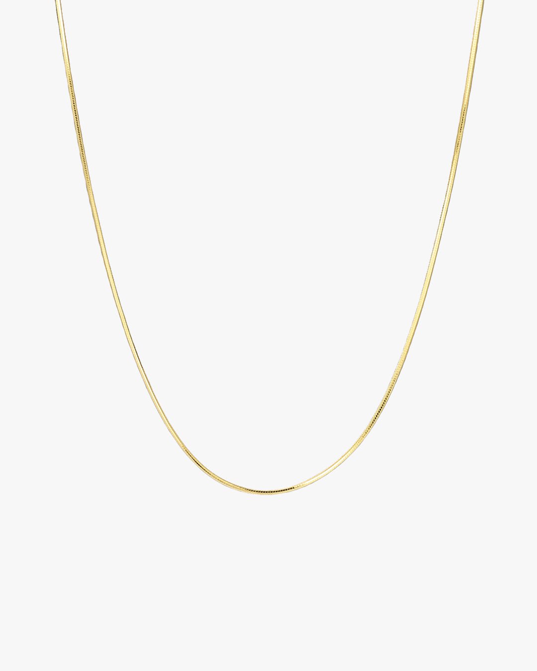 Experience the powerful, liquid-like glow of the Gold 5mm Herringbone Necklace. This bold flat snake chain is a masterclass in "Quiet Luxury," offering a sleek and sophisticated silhouette that makes an unmistakable statement.