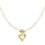 Gold Thick Link Chain Heart Necklace - Statement Pendant Chain