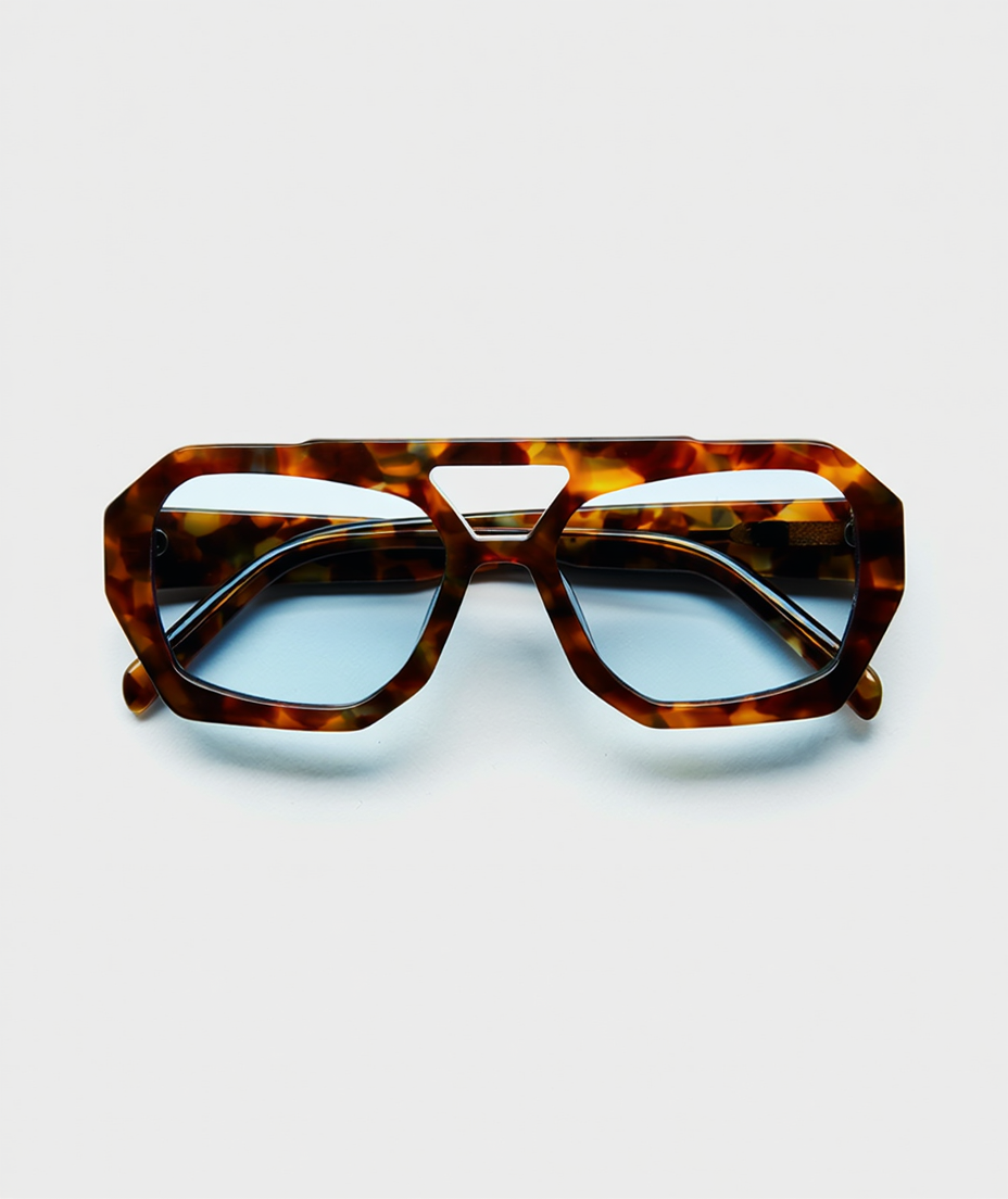 Women’s Octagonal Aviator Sunglasses – Tortoise Frame with Sky-Tinted Lenses