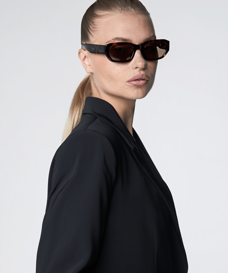 Women’s Slim Rectangular 90s Sunglasses – Choc Tortoise Frame with Smoke Lenses