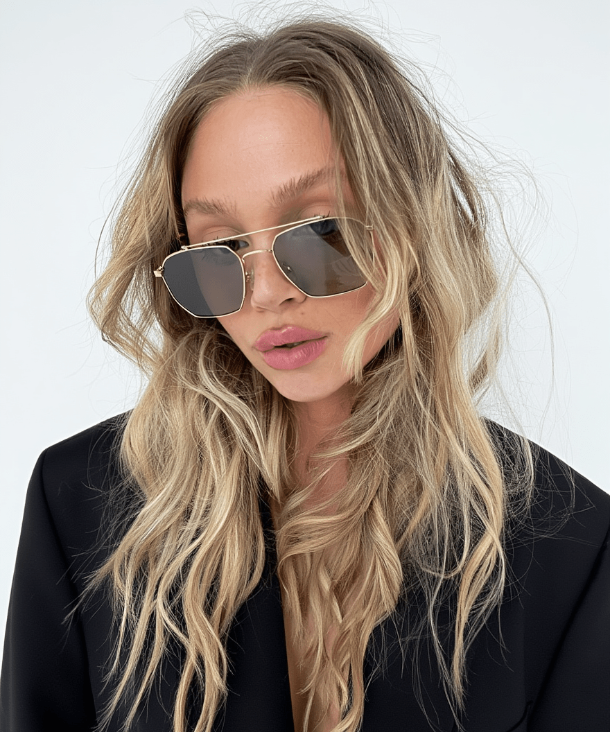Women’s Gold Metal Frame Sunglasses – Graphite-Tinted Lenses