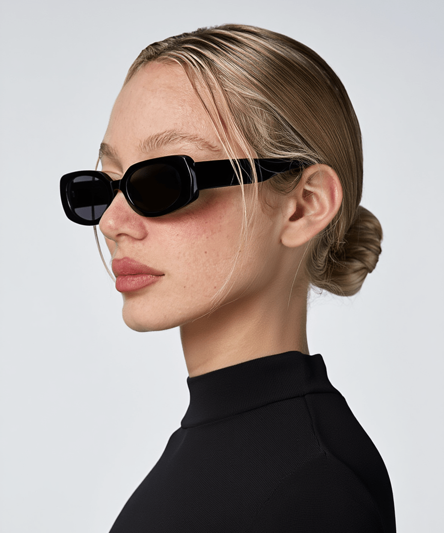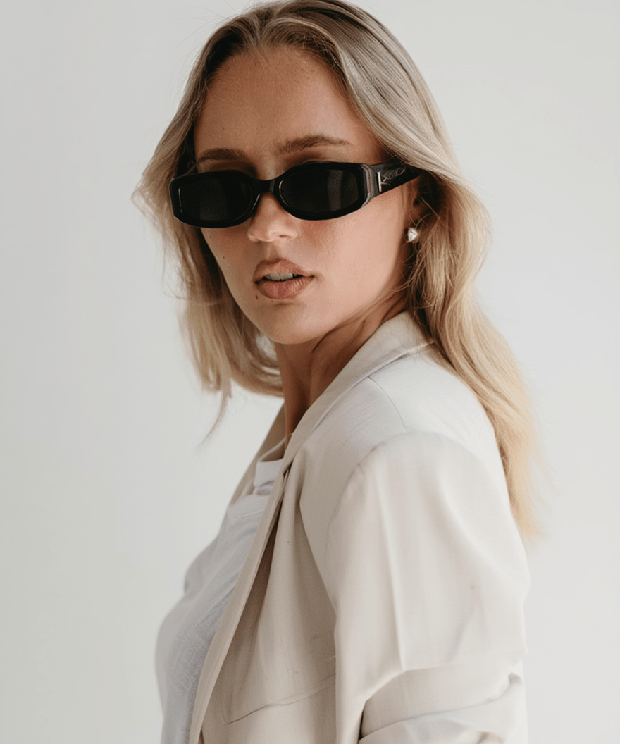 Women’s Slim Rectangular 90s Sunglasses – Black Frame with Smoke Grey Lenses