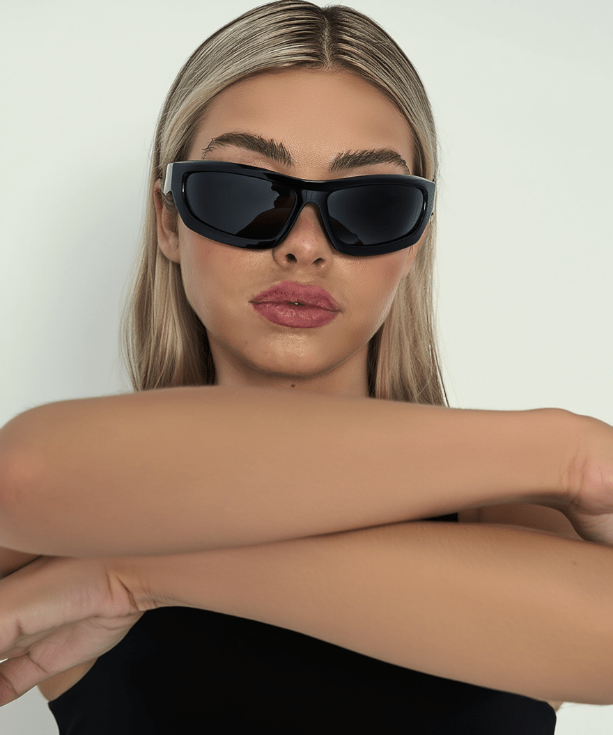 Women’s Wraparound Sunglasses – Black Frame with Smoke-Tinted Lenses